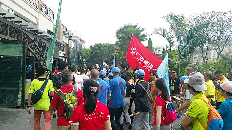 广亚集团百人精英队踊跃加盟的南海线,是佛山五区中参与人数最多、线路最长的一条黄金走SHOW道。广亚人凭着“行在南海、爱在佛山、一路向前,一战到底”的坚毅,从千灯湖活水公园出发,且走且看,边拍边谈,将美景与健康尽收行囊。历经南海体育公园、映月湖公园、东平社区公园、半月岛湿地公园、佛陈桥到世纪莲体育中心胜利会师。从早上8:30到晚上8:30,12个小时,尽管汗水打湿了衣背,但热情驱逐了疲惫,广亚人再次用行动诠释了“全民健身”的理念,将“我运动、我快乐”演绎得淋漓尽致。