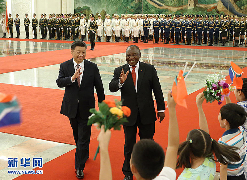 9月2日,国家主席习近平在北京人民大会堂同南非总统拉马福萨举行会谈。这是会谈前,习近平在人民大会堂北大厅为拉马福萨举行欢迎仪式。 新华社记者 姚大伟 摄 在习近平总书记“真实亲诚”对非核心理念的指引下,本次峰会将紧密围绕“合作共赢,携手构建更加紧密的中非命运共同体”这一时代主题,积极推动“一带一路”倡议全面对接非洲联盟“2063”议程以及联合国2030可持续发展议程,共商合作新大计,共谱友谊新篇章。