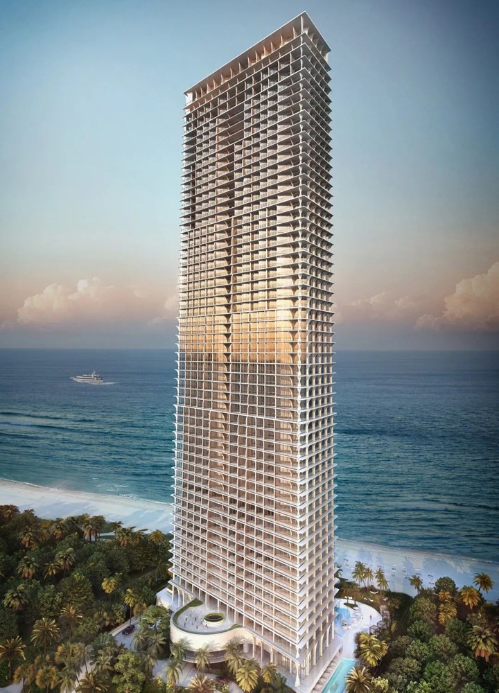 大厦位于迈阿密阳光海滩边,总高57层,共有192套公寓。其中51至54层为空中别墅,55到57层为顶层复式,单套公寓总价超过2亿人民币,为全球最顶尖的奢贵公寓之一。