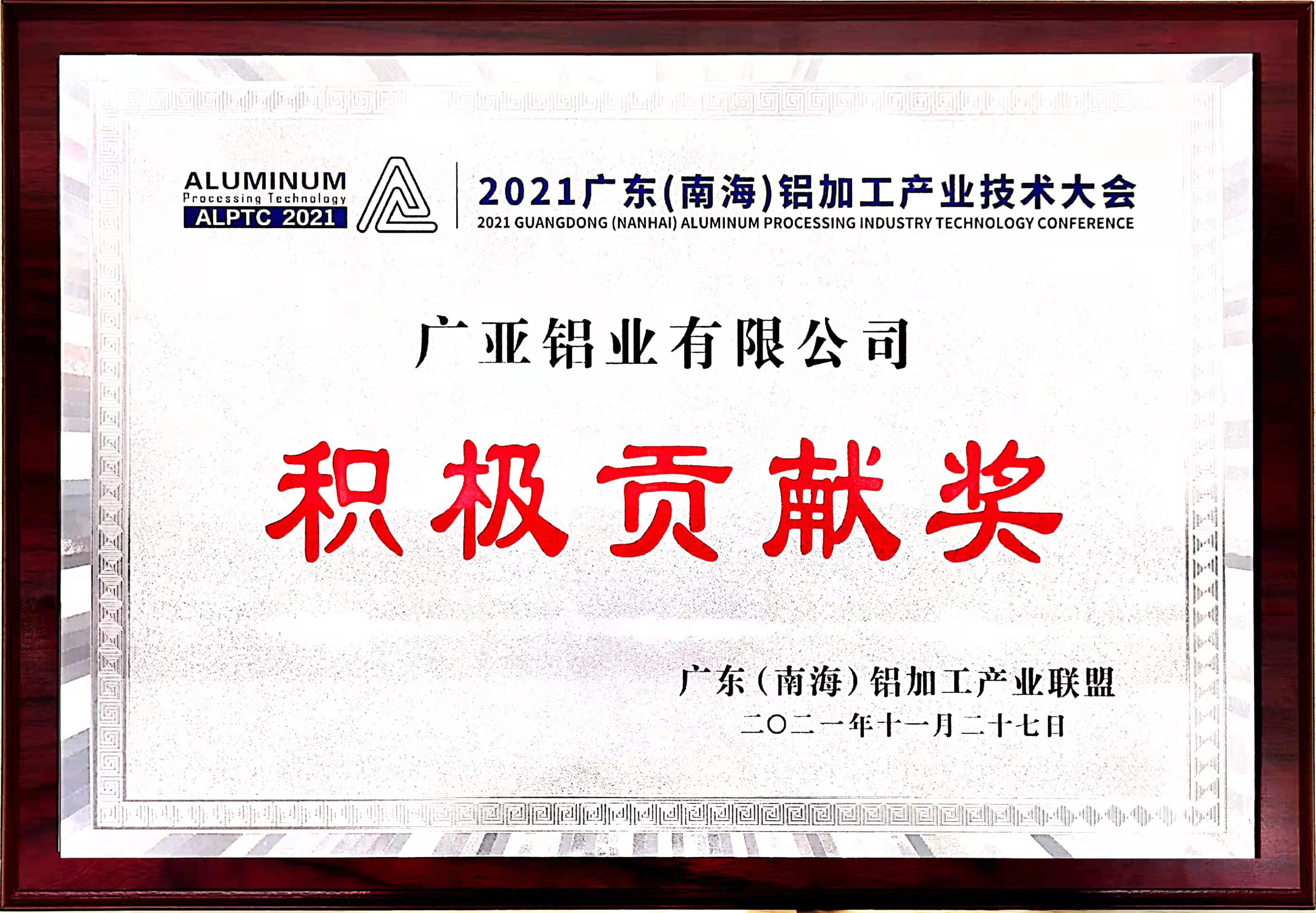 2021广东(南海)铝加工产业技术大会盛大举行,广亚铝业再获“积极贡献奖”!