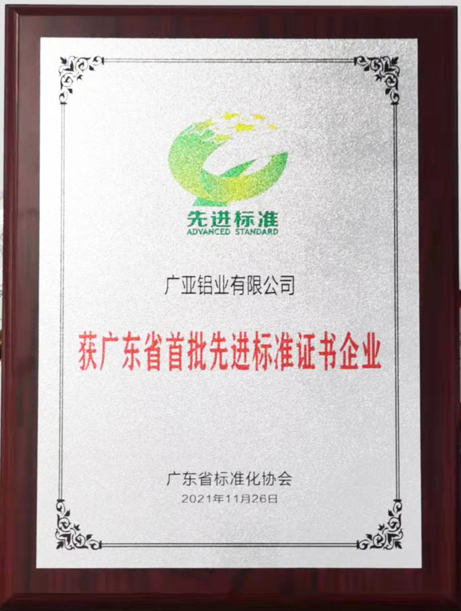 打造质量标准高地!广亚铝业获“广东省首批先进标准证书”