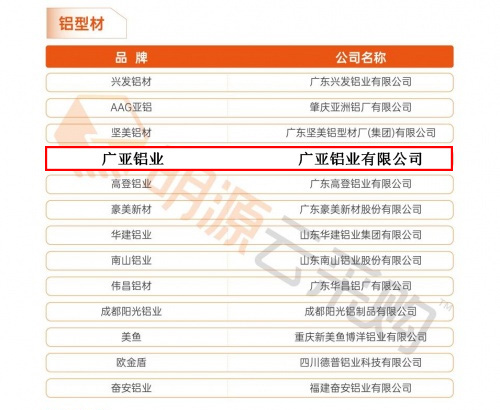 广亚铝业荣登“2021年度中国房地产供应商行业竞争力十强”榜单