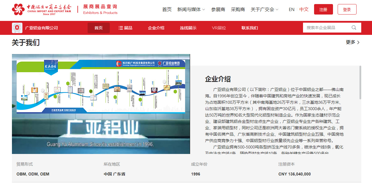 作为每年参展的“老广交”,广亚铝业已积累一套成熟的运作经验,依托广交会线上平台,前瞻布局“云展厅”,以图片、视频、3D、VR等多维展示形式,通过线上